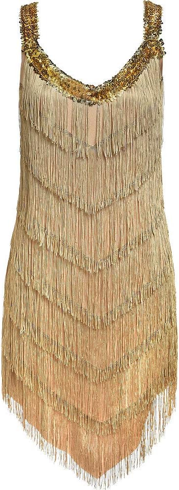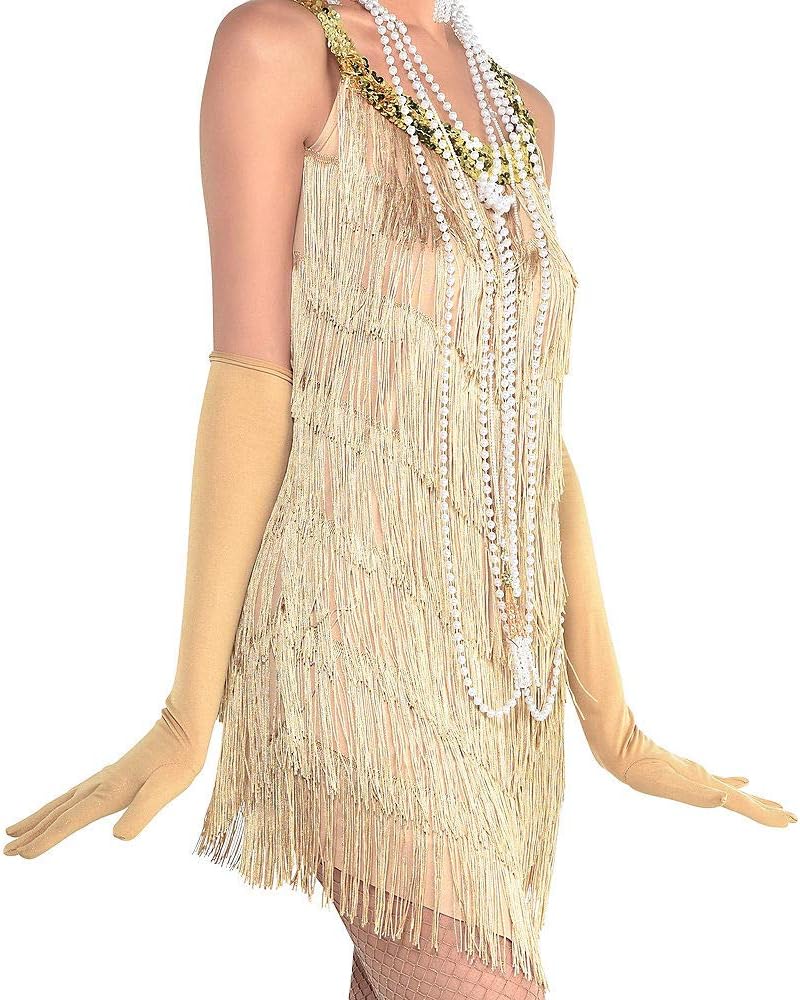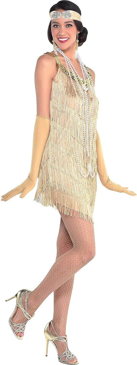 ادخلي إلى حقبة العشرينات الصاخبة. احصلي على مظهر الفتاة الشابة الأصيلة من عشرينيات القرن الماضي بسهولة عندما ترتدين فستان Champagne Flapper الذي يتميز بلون اصفر ذهبي ، يأتي هذا الفستان أيضًا مع تقليم من الترتر بلون الشمبانيا على طول خط الصدر والأشرطة.