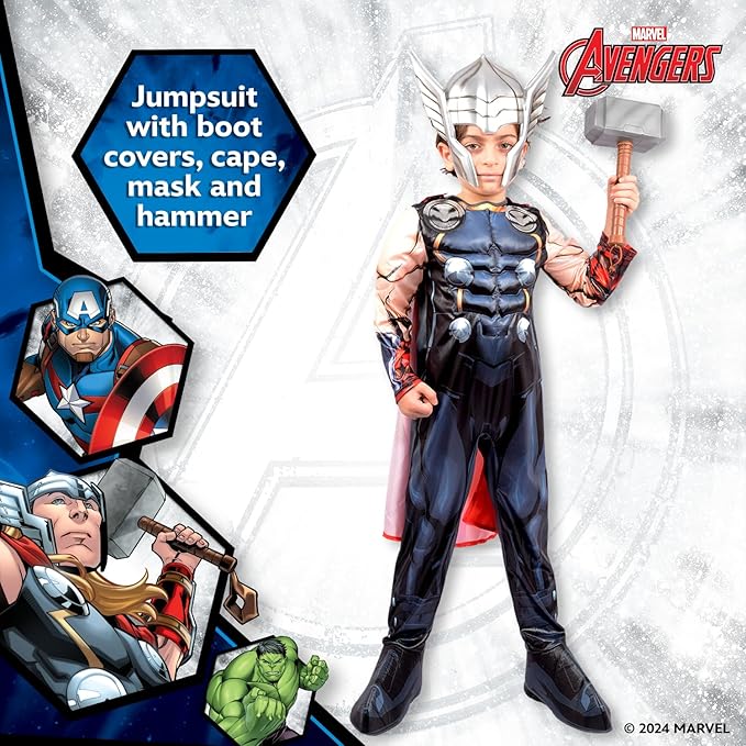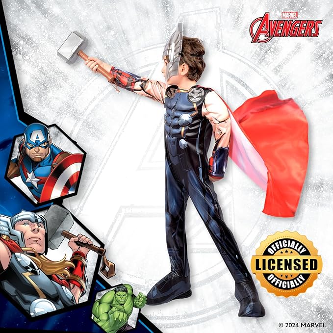 زي تنكري رسمي مرخص من مارفل، مستوحى من شخصية "ثور" إله الرعد الاسكندنافي. يتميز هذا الزي بتفاصيل دقيقة تجعله مثاليًا لحفلات الأبطال الخارقين والهالوين ومناسبات أخرى. يأتي مع بدلة مبطنة، جزمة وحزام، بالإضافة إلى رداء يعكس شخصية "ثور". يمكن غسله يدويًا فقط للحفاظ على جودته. مثالي لجعل أي مناسبة تنكرية مليئة بالإثارة والمرح.